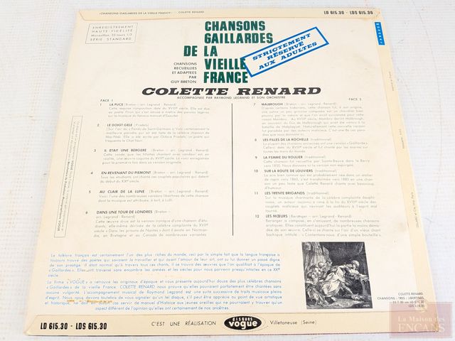 Deux disques vinyles trente-trois tours vintages Chansons gaillardes de Colette Renard