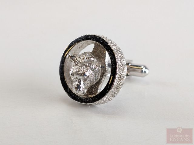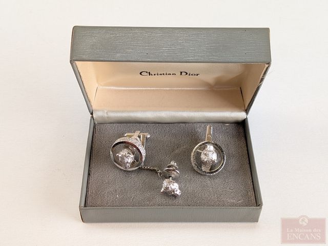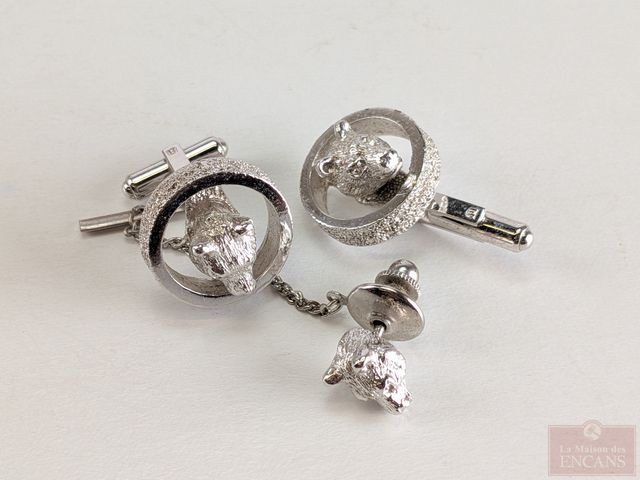 Lot # 181 - Ensemble Christian Dior comprenant paire de boutons de manchettes et boutonnière avec motifs de têtes d'ours, dans sa boite SOLD