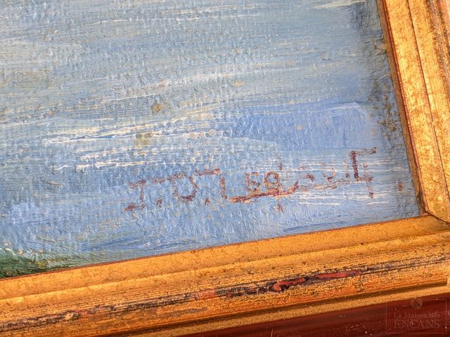 J.O. LEAGAULT (peintre de la Montée Saint-Michel) - Huile sur panneau signée, mesurant 5.5x8 pouces et titrée Bord du lac Saint-Louis