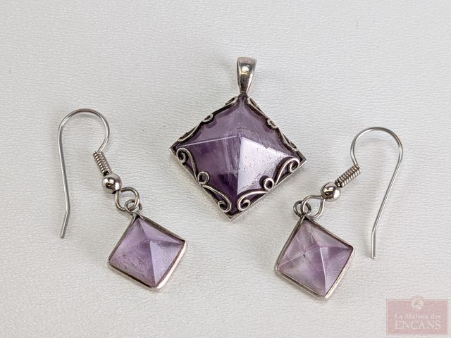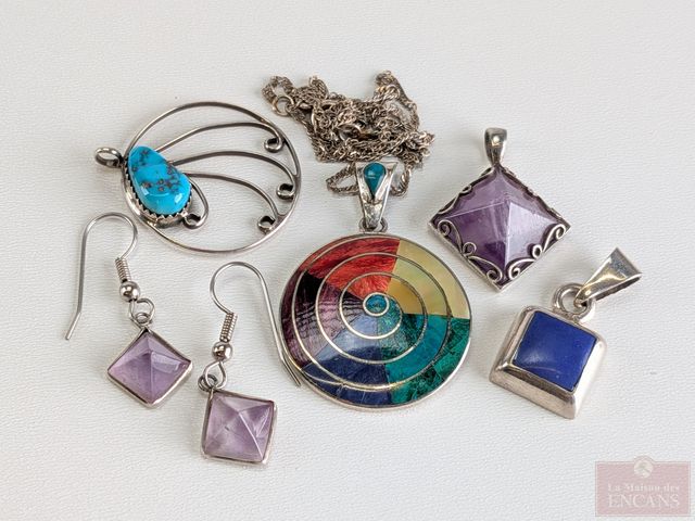Lot de bijoux en argent comprenant pendentifs et paire de boucles d'oreilles