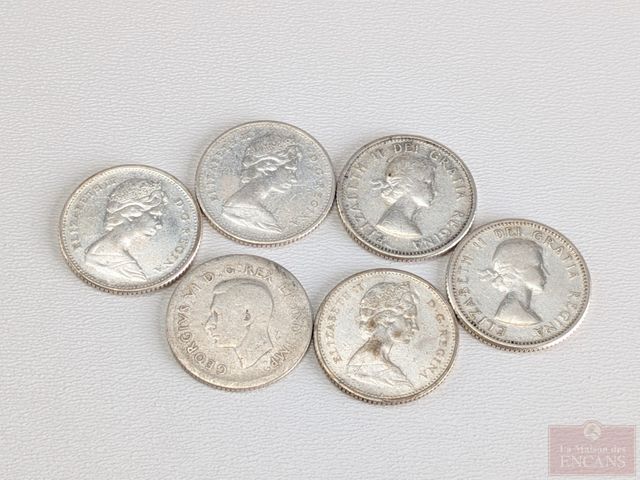 Lot # 117 - Lot de pièces canadiennes de dix sous en argent, comprenant 1939, 1955, 1962, 1966 et 1968 x2