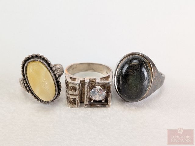 Lot # 68 - Trois bagues en argent de tailles 4.5, 6.5 et 7