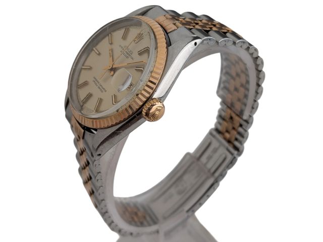 Lot # 120 - Montre Rolex Oyster Perpertual Datejust deux tons en acier et or 18k, ref. 1601, datant de 1973, mouvement automatique mesurant 36 millimètres, fonctionnelle