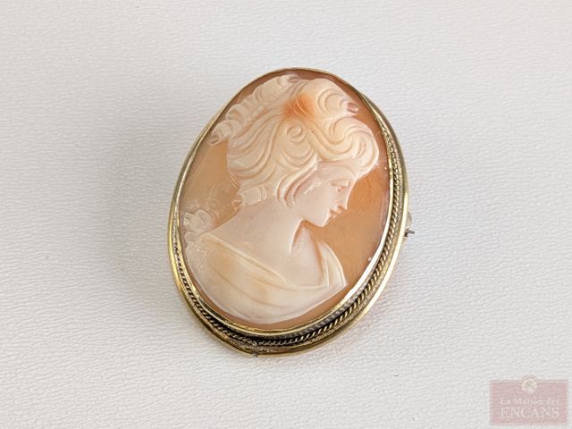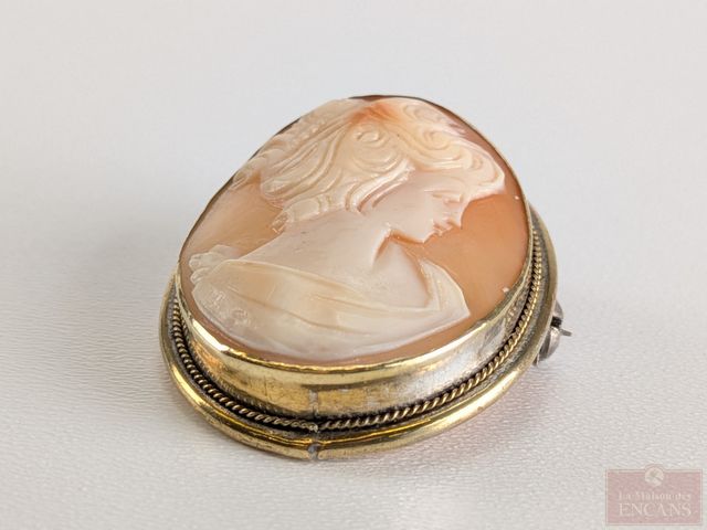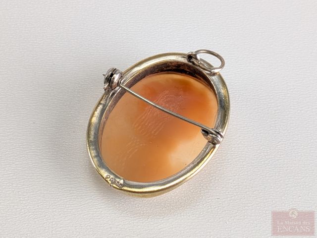 Lot # 83 - Camée sculpté sur coquillage et monté sur pendentif-broche en argent plaqué or (vermeil), mesurant 1.25 pouces de hauteur
