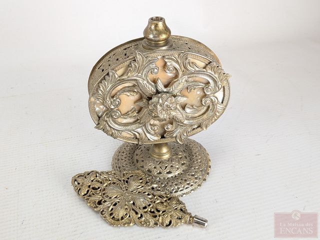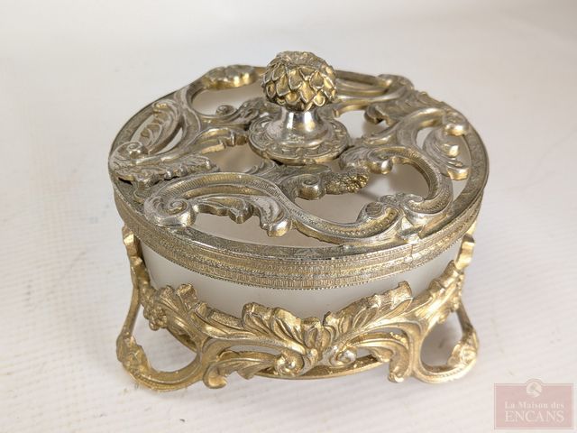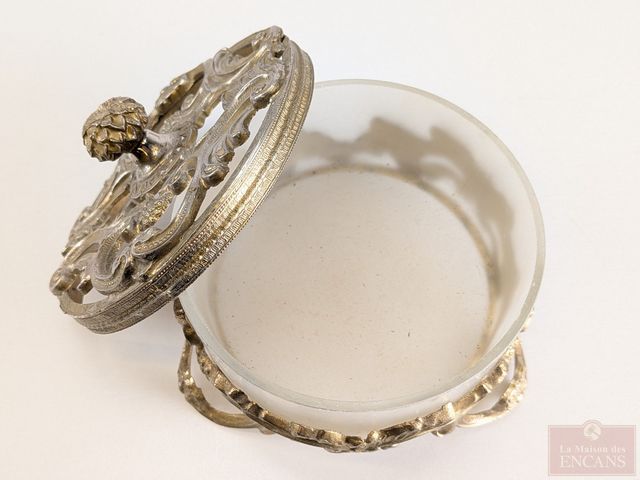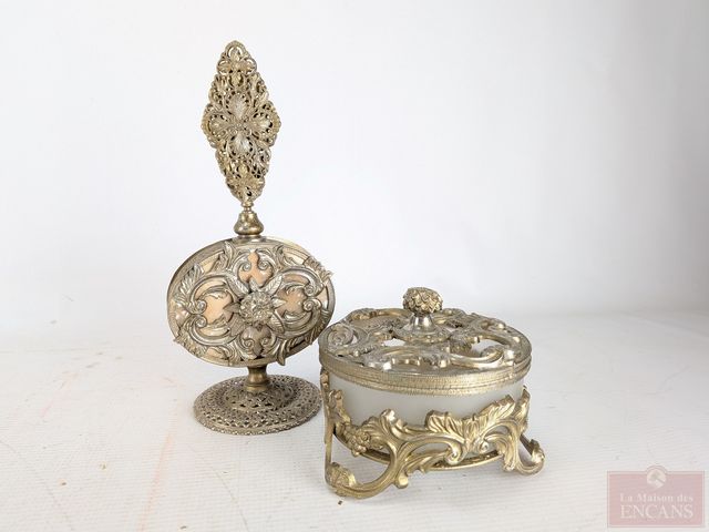Lot # 24 - Parfumeuse et bonbonnière en verre et métal, circa 1920, la plus grande mesurant 10 pouces de hauteur