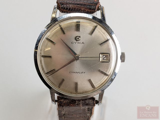 Montre Cyma Cymaflex avec date, mouvement automatique mesurant 26.8 millimètres avec sa couronne, fonctionnelle
