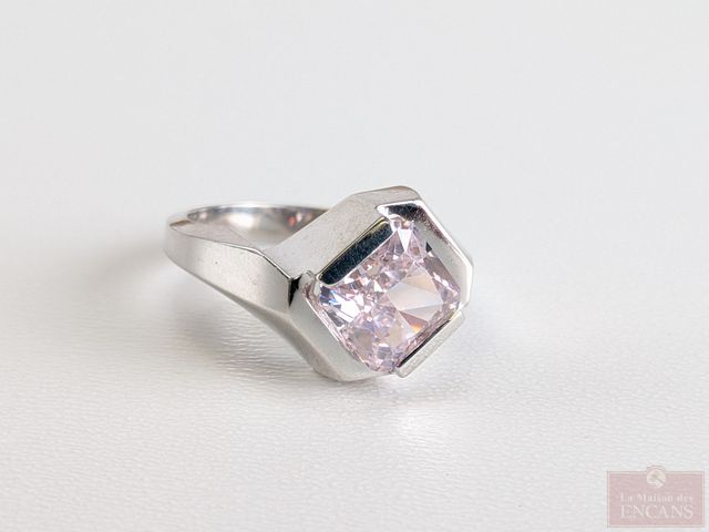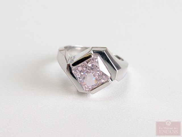 Lot # 78 - Bague en argent sertie d'une pierre, taille 7