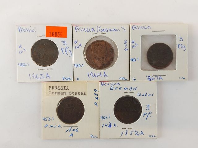 Lot # 221 - Lot de pièces de monnaie prusses 1865a 1864a 1852a 1867a 1846a SOLD