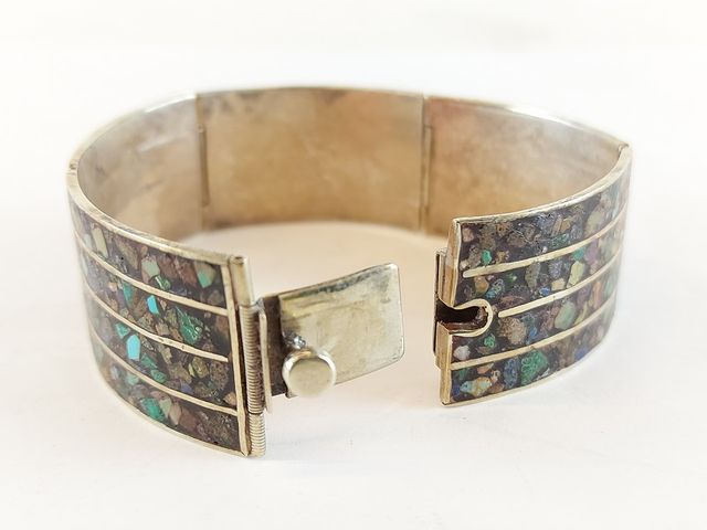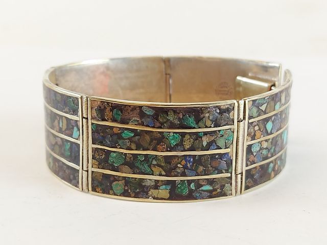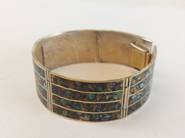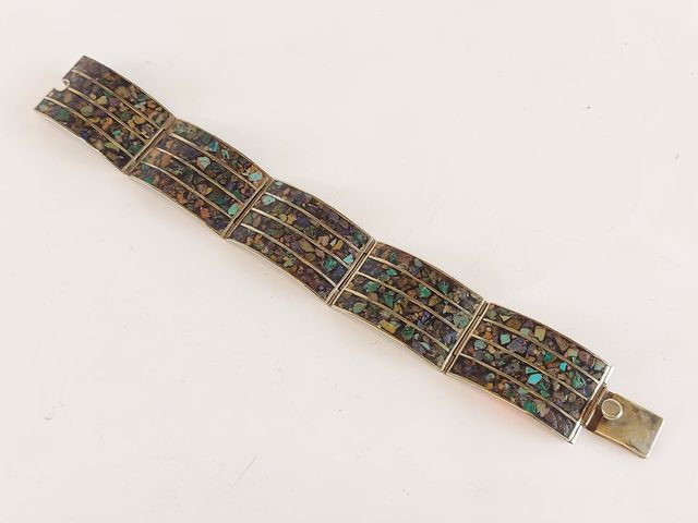 Lot # 181 - Joli bracelet en argent avec incrustations de pierres - 6.5 pouces de longueur SOLD