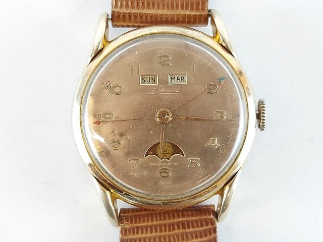 Lot # 79 - Montre Le Phare - mouvement à remontage manuel - avec date et phases de la lune - boitier mesurant 36.5 mm avec la couronne - fonctionnelle SOLD
