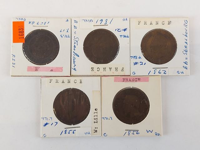Lot # 228 - Lot d'anciennes pièce de monnaie françaises 1857bb 1856 1862 1861 1855 SOLD
