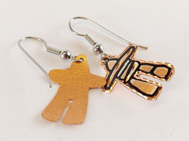 Lot # 47 - Très jolie paire de boucles d'oreilles émaillées mesurant 1.5 pouce de longueur et représentant des inukshuks symbole de l'âme humaine - entièrement réalisé à la main par un artiste esquimau SOLD