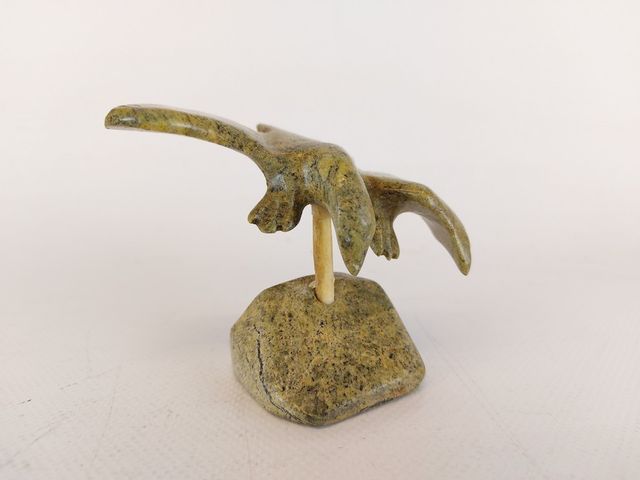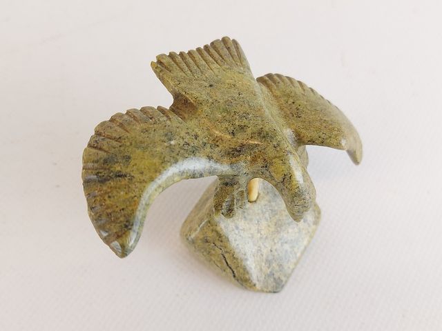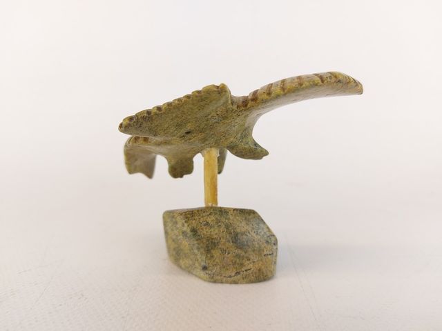 Lot # 63 - Exceptionnelle sculpture esquimaude signée et sculptée dans une superbe pierre verte à multiples tons de vert - représentant un aigle en vol - en excellente condition - mesurant 4x3 pouces - chef d'œuvre de l'art esquimau   SOLD