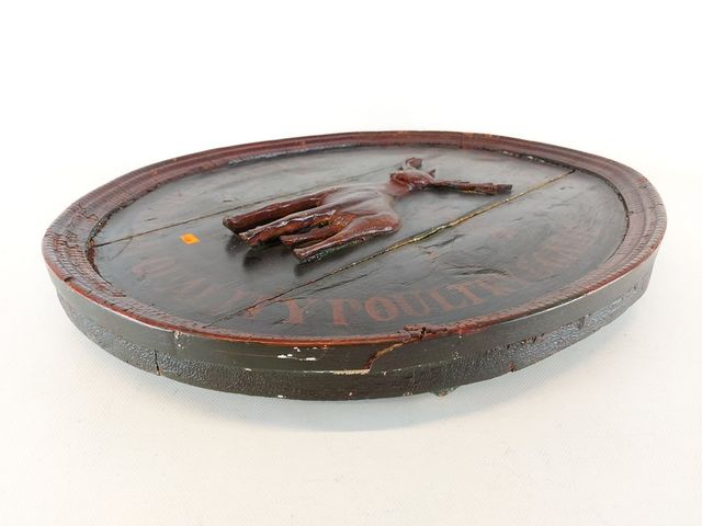Lot # 26 - Enseigne publicitaire ancienne peinte sur bois - 24 pouces de hauteur SOLD