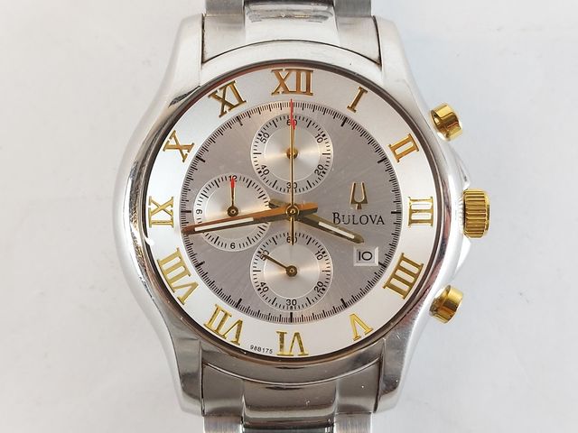 Lot # 171 - Montre Bulova au quartz - avec date - chronographe - chiffres romains - 44.8mm avec la couronne - fonctionnelle SOLD