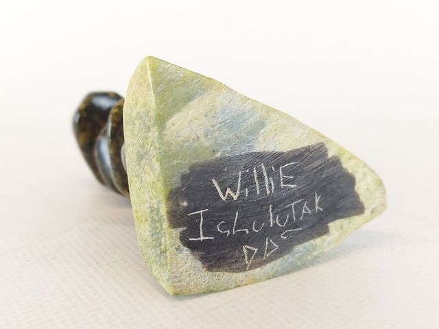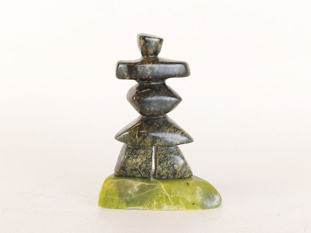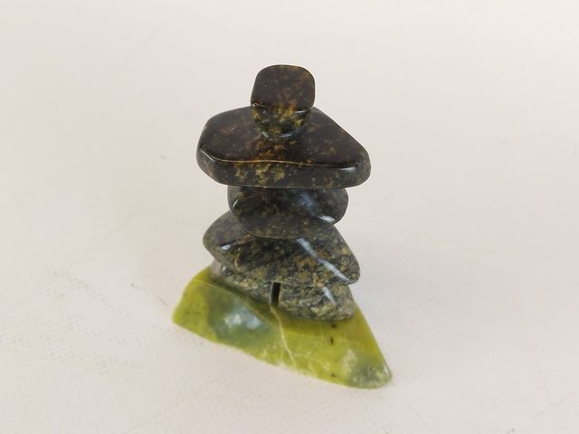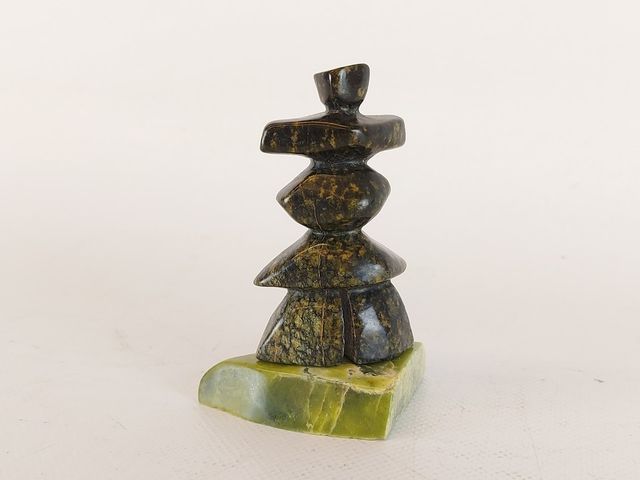 Lot # 73 - Très joli sculpture réalisée dans des pierres de rares couleurs différentes représentant un inukshuk symbole de l'âme humaine - signée en esquimau et en excellente condition - mesurant 4 pouces de hauteur   SOLD