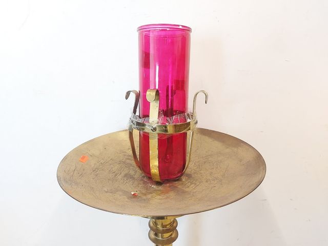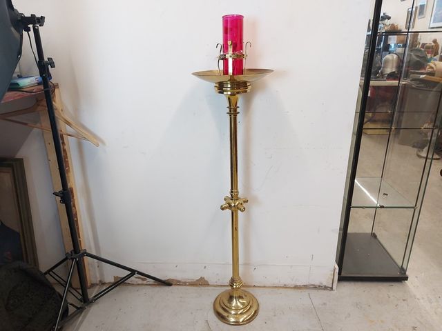 Lampe de sanctuaire sur pied en laiton - avec son globe - 51 pouces de hauteur