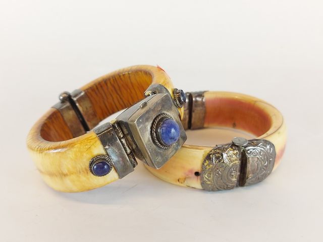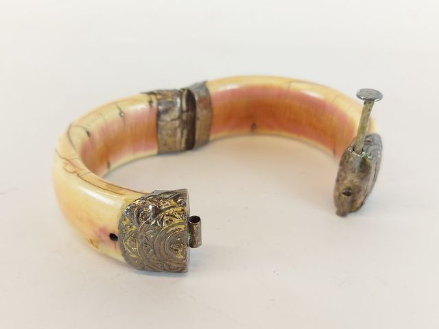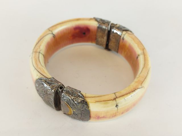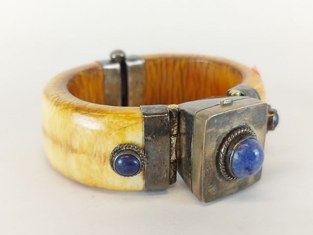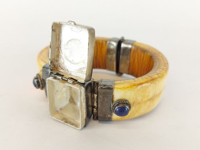 Lot # 166 - Bracelet d'ivoire et d'argent avec compartiment secret - 2.5 pouces de diamètre  SOLD