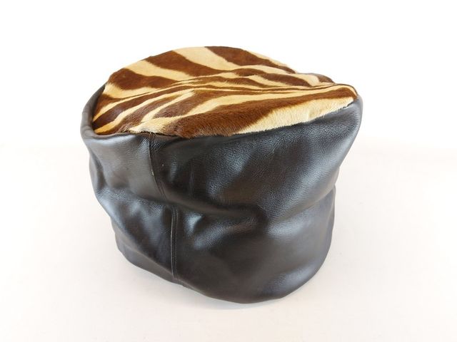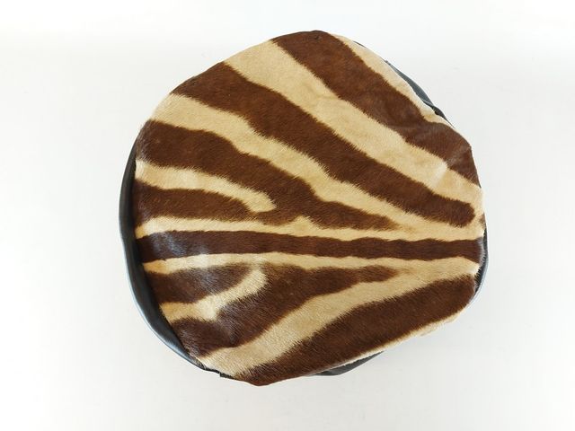 Pouf en peau et cuir véritable de zèbre - mesurant 15 pouces de diamètre