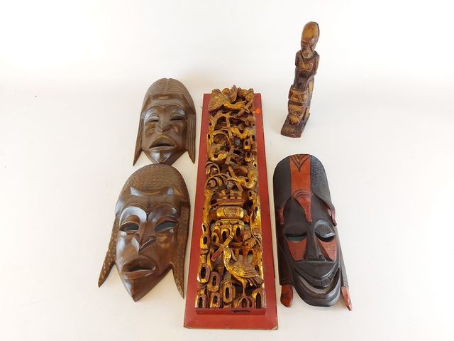 Lot de sculptures sur bois anciennes - dont une grande mesurant 24 pouces de largeur