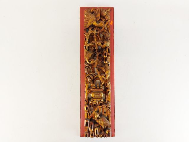 Lot # 201 - Lot de sculptures sur bois anciennes - dont une grande mesurant 24 pouces de largeur  SOLD
