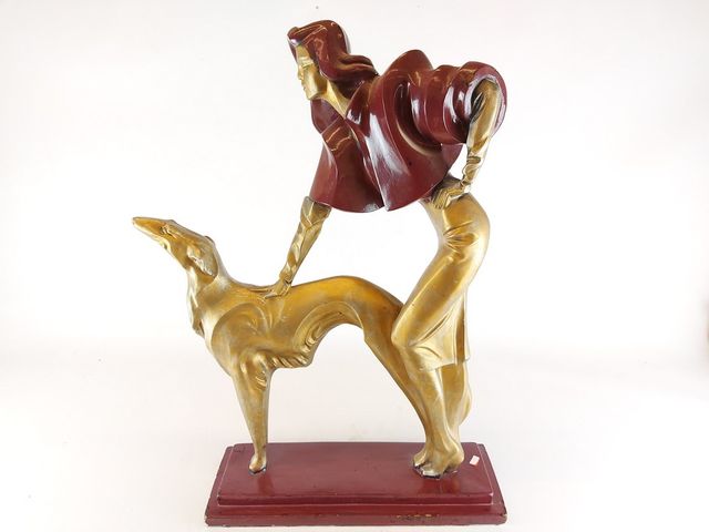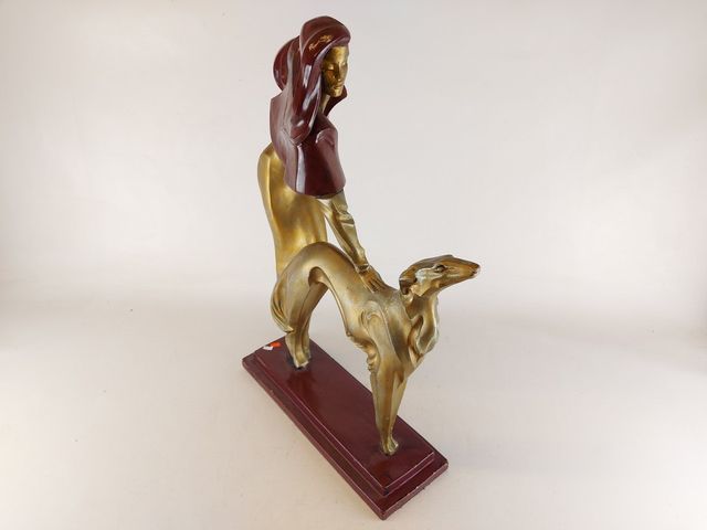 Lot # 205 - Sculpture Austin de style art nouveau représentant une dame avec un lévrier - mesurant 27 pouces de hauteur  SOLD
