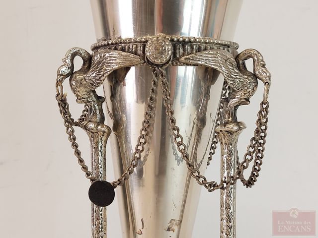 Lot # 32 - Épergne en métal argenté de style empire avec pates de lions et oiseaux - mesurant 17 pouces de hauteur VENDU