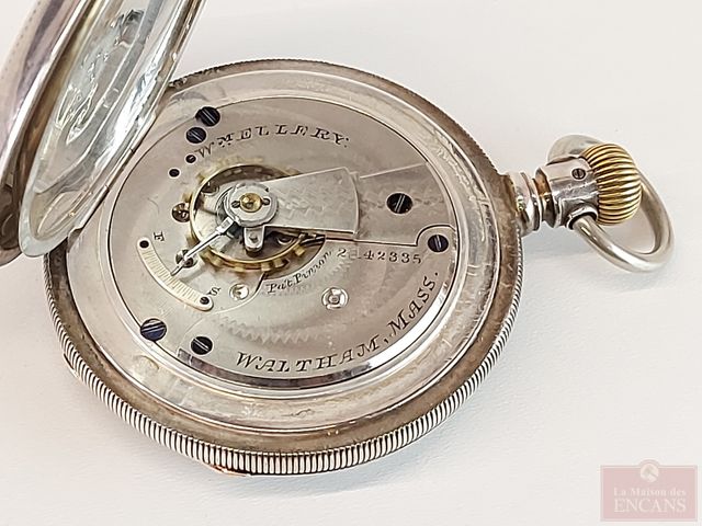 Lot # 98 - Montre de poche Waltham boitier en argent sterling mesurant 3.25 pouces de hauteur datant de la fin du 19em siècle et fonctionnelle SOLD