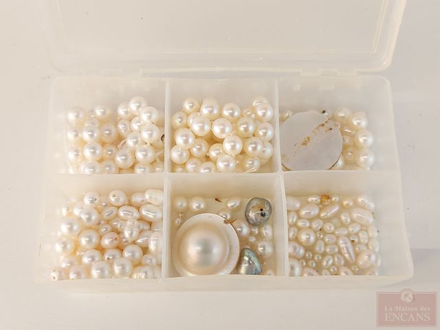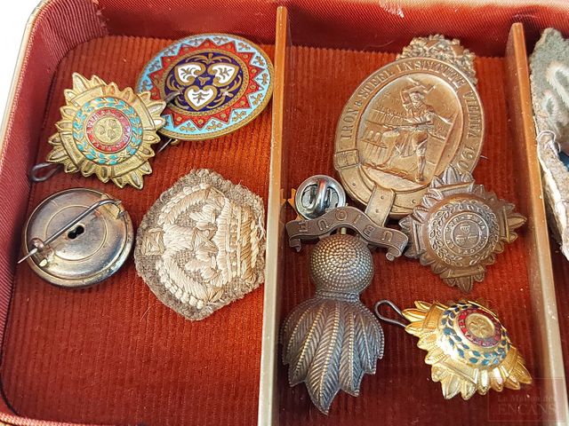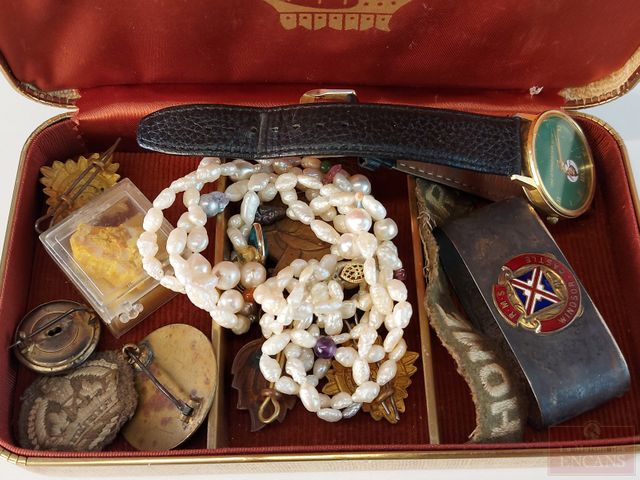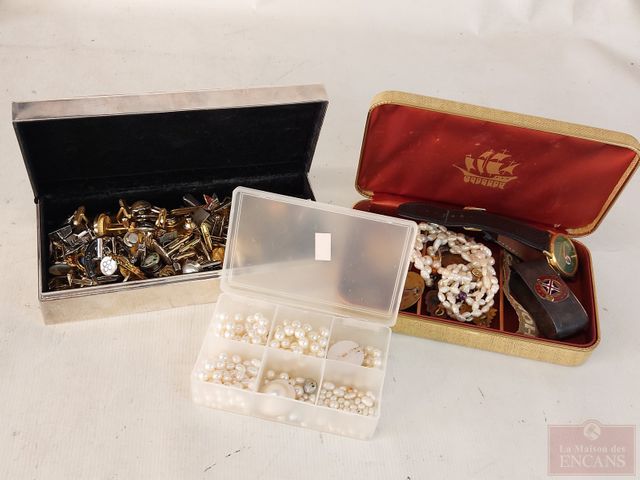 Lot # 220 - Lot varié comprenant insignes militaires, perles naturelles et autres SOLD