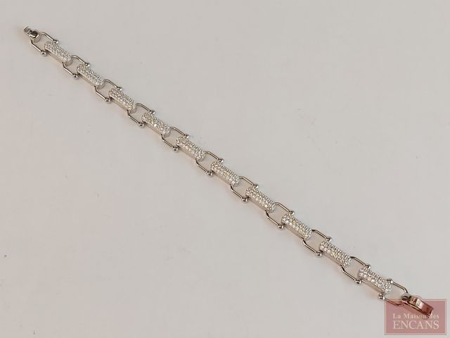 Bracelet de style Cartier en argent sterling serti de multiples pierres, mesurant 7.5 pouces de longueur