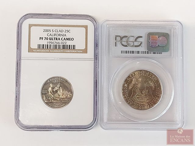 Lot # 195 - Lot de trois pièces de cinquante cents et une pièce de vint cinq cents américaines gradées, dont proof CANCELLED