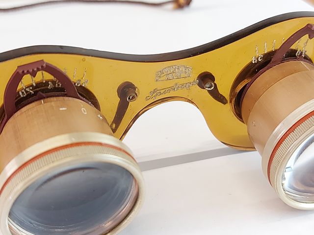 Lot # 191 - Paire de lunettes-loupe de bijoutier Dr. Waller Saar Ports Scope, faite en Allemagne, avec son étui de transport mesurant 6.5 pouces SOLD