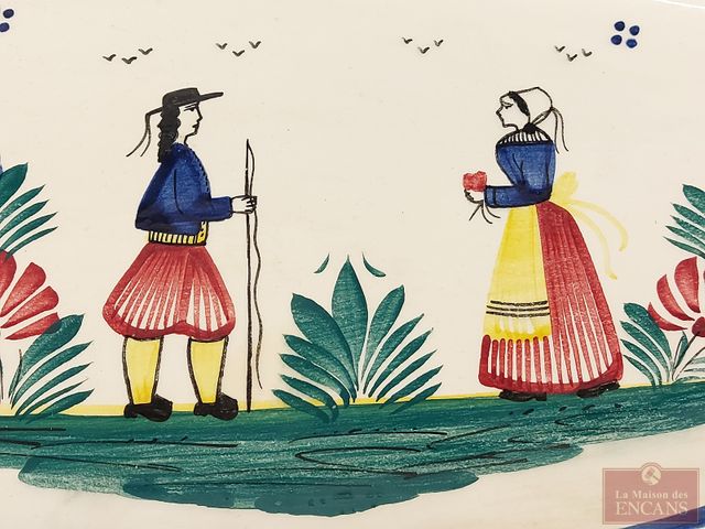 Lot # 39 - Centre de table en céramique Henriot Quimper, peint à la main et mesurant 22 pouces SOLD