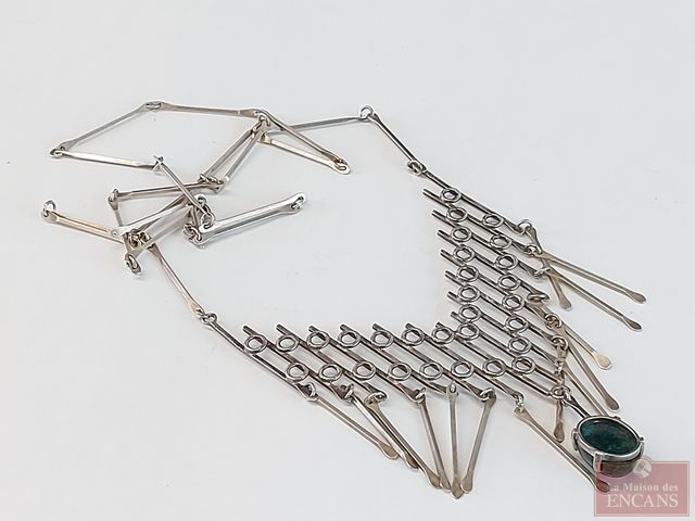 Lot # 115 - Collier moderniste en argent sterling serti d'un chrysocole, mesurant 26 pouces de longueur VENDU
