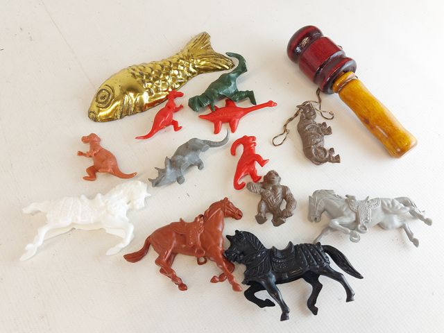 Lot # 10 - Lot varié comprenant une chaise de poupée rétractable Terry Toy - figurines - anciens casses-têtes - jeux Tiddledy Winks - et autres SOLD