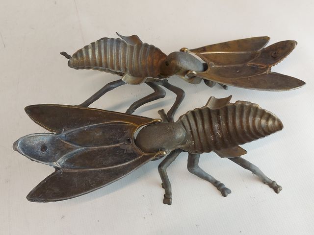 Lot # 167 - Deux mouches en métal servant de cendrier - de style art nouveau - mesurant 7 pouces de longueur VENDU