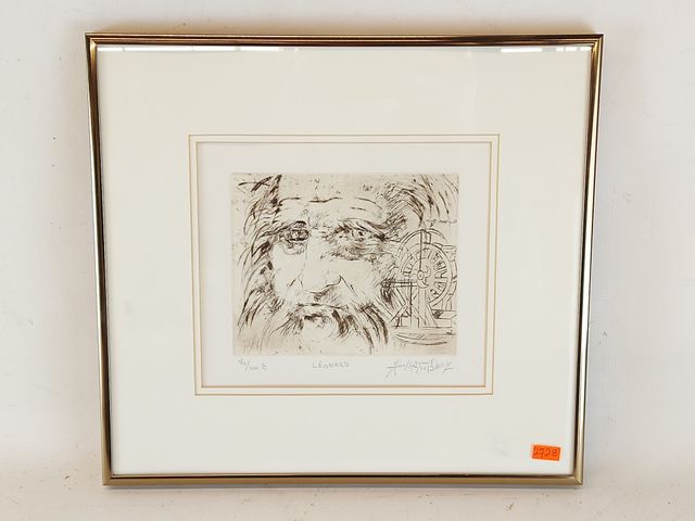 Lot # 162 - Joëlle B LEBLANC - Gravure sur papier signée et numérotée à la mine - titrée Léonard - mesurant 4.75x5.75 pouces SOLD