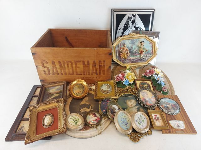 Lot # 234 - Lot varié comprenant cadres - dont huiles sur panneau - ancienne photo-lithographie de la Reine Victoria - et autres VENDU