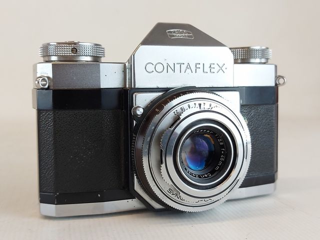Lot # 130 - Ancienne caméra argentique Zeiss Ikon modèle Contaflex - faite à Stuttgart en Allemagne avec lentille Carl Zeiss Tessar 1:2.8 f-45ml SOLD