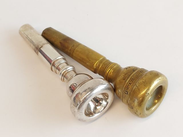 Trompette Sonata avec ses deux embouchures et sa sourdine - B&S Markneukirchen Klingenthal - mesurant 19 pouces de longueur - dans son coffre