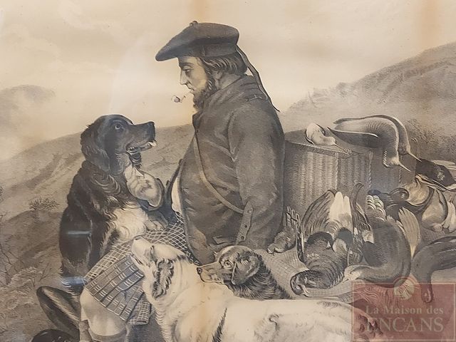 Lot # 16 - Lithographie ancienne imprimée en Allemagne - titrée The Scotch Game Keeper - mesurant 23x17 pouces SOLD