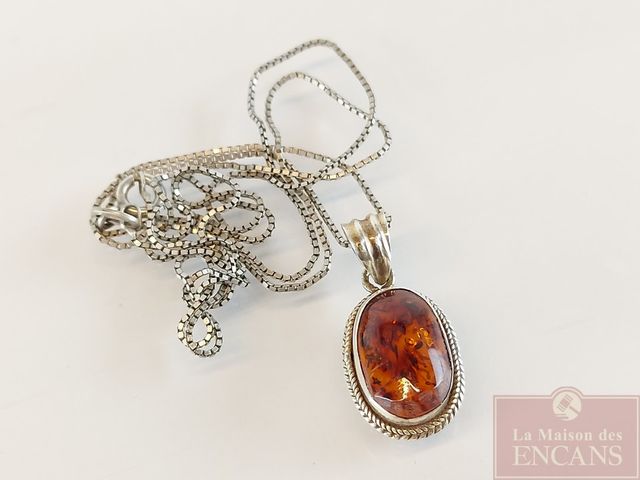 Lot # 36 - Lot de bijoux en argent - dont deux paires de boucles d'oreilles et un pendentif avec ambre rouge SOLD