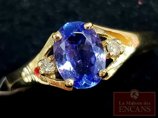 Lot # 1 - Bague en or jaune 10k avec tanzanite (0.6ct) et diamant (0.03ct), taille 7.5 VENDU