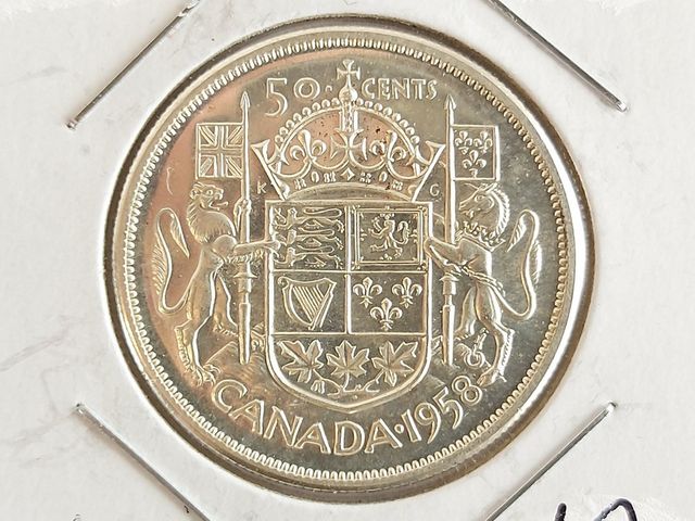 Lot # 190 - Une pièce canadienne en argent de 50 sous de 1958 VENDU