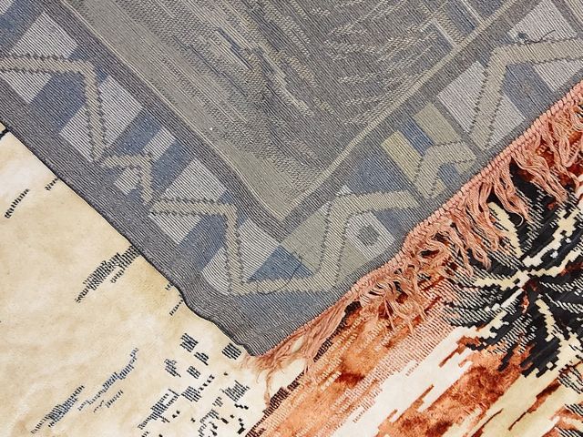 Lot # 31 - Ancienne tapisserie murale centenaire en soie représentant une scène du Moyen-Orient - mesurant 46x72 pouces SOLD