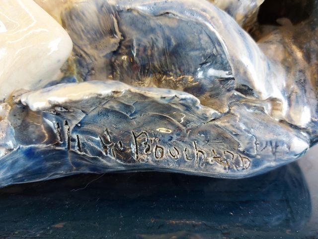 Lot # 22 - Hugette Bonet BOUCHARD (épouse du sculpteur Jordi Bonet) - Rare sculpture sur céramique signée circa 1980 - sur sa base en verre - mesurant 13x13 pouces VENDU