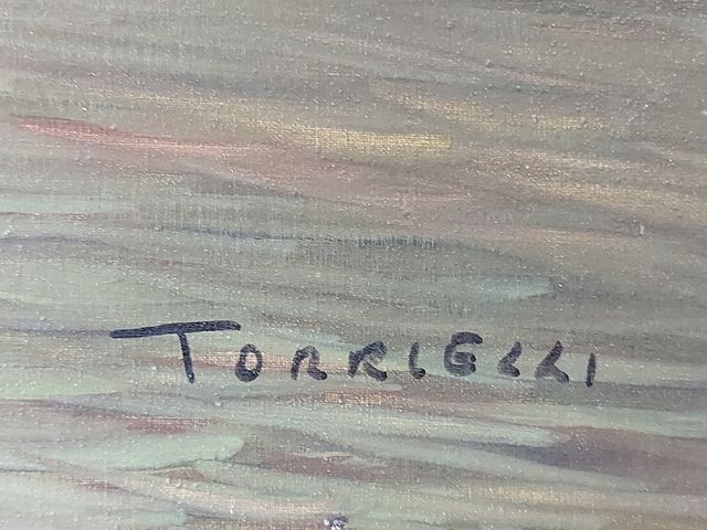 Lot # 36 - TORRIELLI - Huile sur toile signée - scène marine - mesurant 23.5x47 pouces SOLD