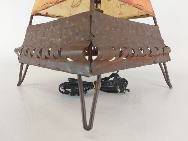 Lot # 227 - Lampe cuir et métal - 25 pouces de hauteur CANCELLED