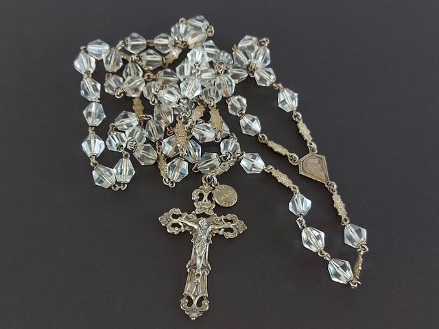 Beau chapelet en argent et cristal mesurant 25 pouces