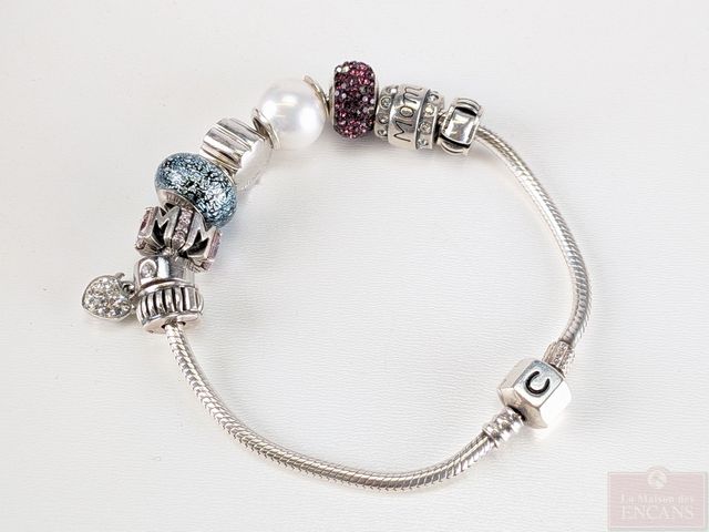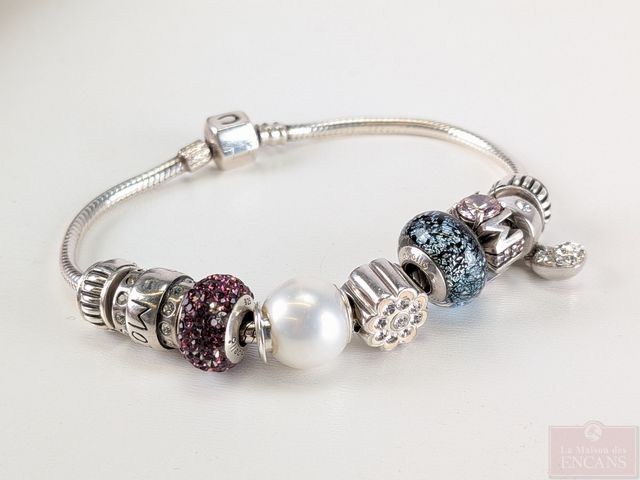 Bracelet Pandora avec breloques en argent, mesurant 8 pouces de longueur